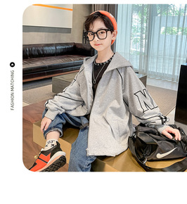 2021年新款秋款潮牌针织戴帽休闲时尚卫衣中大童外...