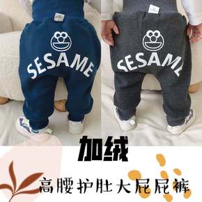 秋冬加绒高腰护肚婴童大屁屁裤男宝百搭不倒绒休闲洋气...