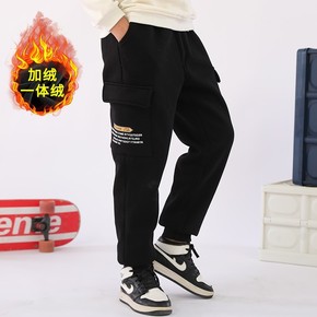 男童加绒裤子秋冬装中大童厚一体绒儿童保暖帅气运动裤...