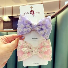 工厂店韩国东大门新款儿童发饰批发刺绣小雏菊蝴蝶结发...
