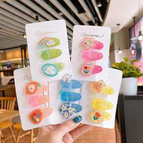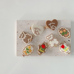 韩版新款儿童发夹奶咖系爱心小熊花朵压夹宝宝侧边夹刘...