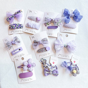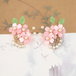 古风儿童汉服发夹渐变紫色花瓣珍珠流苏头饰边夹复古对...