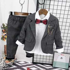 儿童加绒西装两件套2022中小套秋冬男宝宝周岁礼服...
