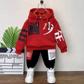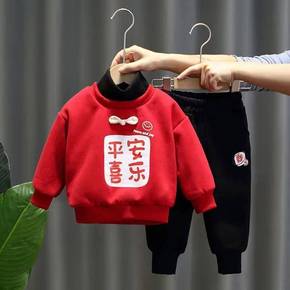 男宝宝卫衣套装加绒加厚男童冬装洋气儿童小孩冬天衣服...