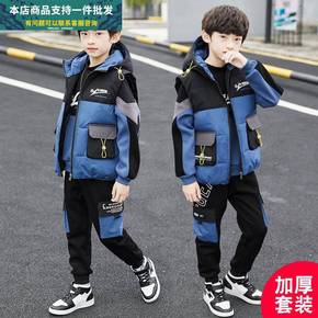童装男童冬装套装2021新款儿童冬季中大童加厚加绒...