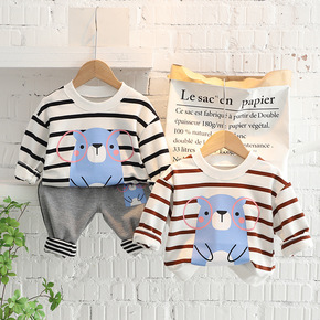 春季韩版卡通童装0-4岁条纹小熊长袖春装男童休闲儿...