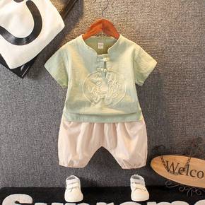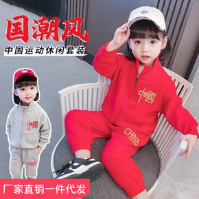 2022春季新款中小童套装男女童万针刺绣圆领套装学...