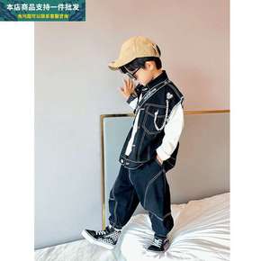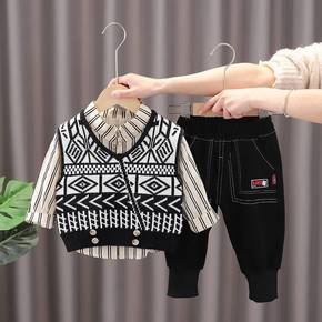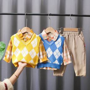 男童春装套装2022新款宝宝帅气春秋装毛衣马甲儿童...