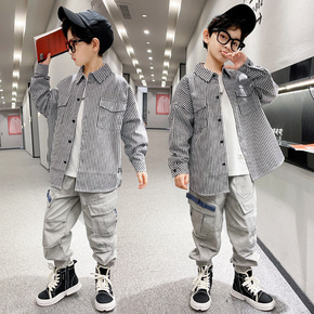 男童秋装套装2021年韩版儿童衬衫两件套春秋男孩洋...