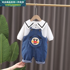 男女宝宝春秋装新款长袖牛仔背带裤套装男童装帅气潮衣...
