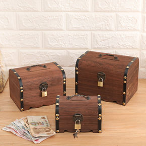 竹木木盒个性存钱罐儿童收纳盒可爱储蓄罐家用百宝箱成...