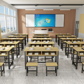 .学校课桌椅培训桌辅导班补习班学习桌双层中小学生双...