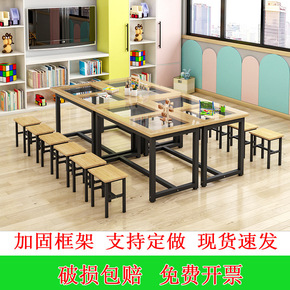 儿童绘画美术桌子绘本馆托管班小学生课桌椅幼儿手工桌...
