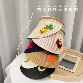 儿童草帽女夏天大檐空顶帽男童防晒出游遮阳帽宝宝太阳...