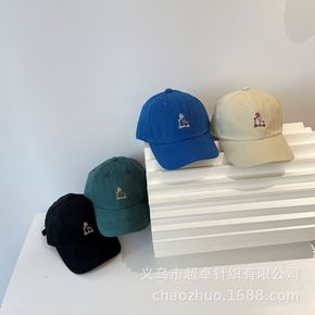 ins春夏儿童水洗做旧棒球网帽潮软顶刺绣男孩女孩嘻...