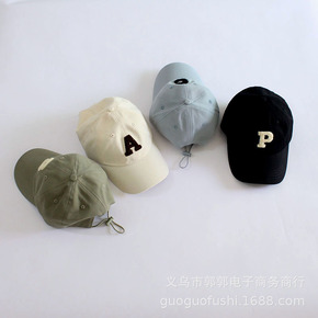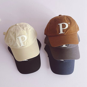 韩系儿童帽子简约P字母棒球帽 潮宝宝男女童色洋气嘻...