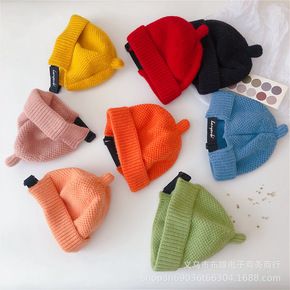 韩国ins款个性魔术贴儿童奶嘴针织帽子 秋冬天婴儿...