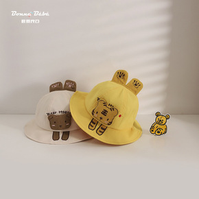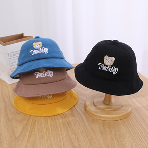 日系儿童秋冬新款渔夫帽子 卡通小熊可爱超萌男女童遮...