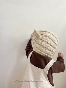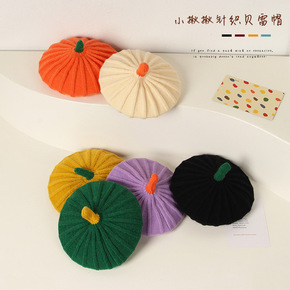 韩国同款针织儿童贝雷帽秋冬洋气凹造型时装帽宝宝帽子...