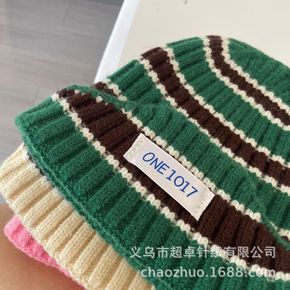 韩版潮流新品儿童冬季条纹翻盖帅气毛线帽...