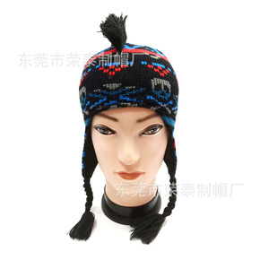 印第安风格护耳帽子男冬时尚潮户外加厚保暖针织帽冬天...