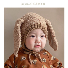 婴儿可爱超萌兔耳朵帽子婴童加厚男宝潮秋冬季护耳保暖...