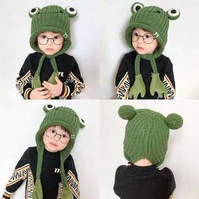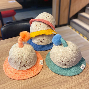 儿童帽子秋冬季女童渔夫帽加厚男宝宝可爱超萌护耳帽婴...