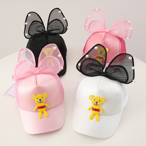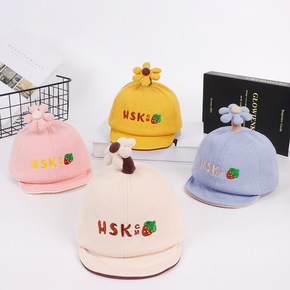 女宝宝帽子春秋款可爱萌太阳花公主帽潮儿童软沿棒球帽...