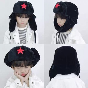 儿童五角星雷锋帽女冬季潮韩版可爱棉帽男宝宝保暖骑车...