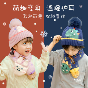 儿童帽子秋围脖2-5-8岁女童男宝宝保暖小孩 护耳...