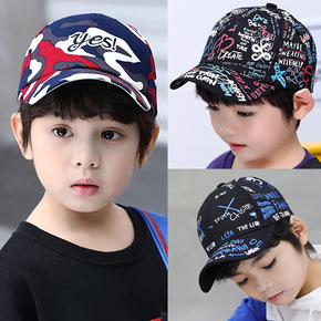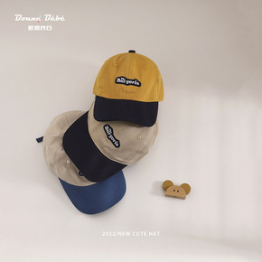 潮流儿童棒球帽子春拼色字母刺绣男孩简约鸭舌帽时尚百...