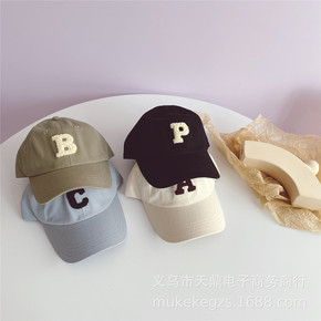 儿童帽子春夏款潮流字母刺绣男孩女童字母鸭舌帽可调节...