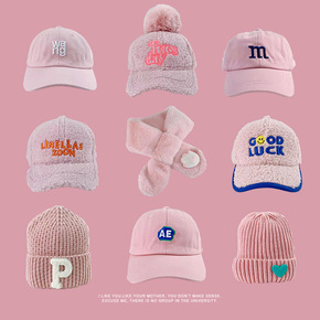粉色儿童帽子批发冬季保暖女童防风护耳可爱针织帽韩国...