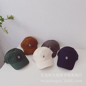 日系简约儿童帽子2022春季字母刺绣百搭男孩鸭舌帽...