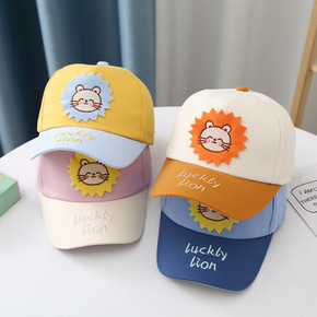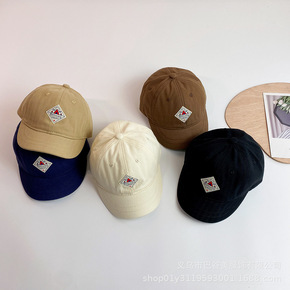 韩风奶油色系儿童鸭舌帽子个性毛巾绣潮男女宝宝百搭软...