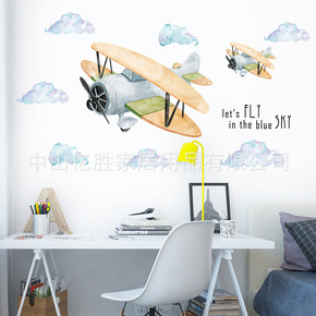 跨境新款卡通热气球火车墙贴儿童房幼儿园墙壁装饰自粘...