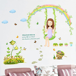 XL7083仲兰卡通彩虹荡秋千女孩儿童房卧室电视背...