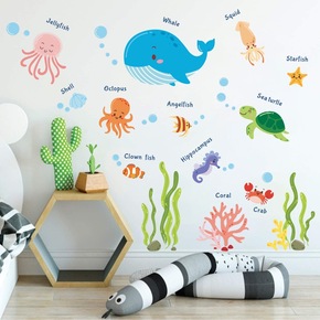 跨境新款海洋生物墙贴 自粘儿童房间装饰海龟鲸鱼贴纸...