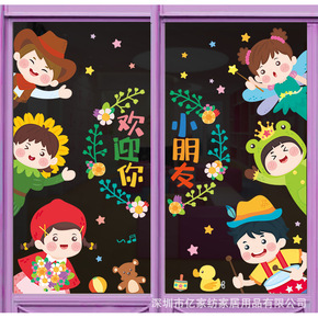 创意卡通幼儿园橱窗玻璃贴纸动物门贴儿童房墙面装饰墙...