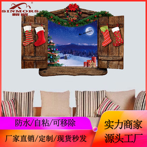 新贸圣诞老人儿童房客厅背景装饰贴画圣诞节派对装饰创...