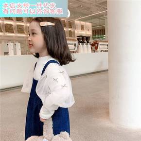 儿童泡泡袖上衣女童T恤2021秋款韩版网纱泡泡袖打...