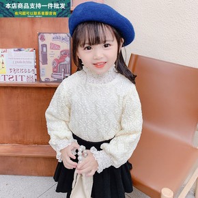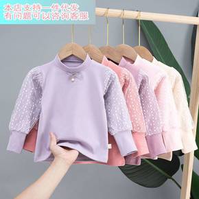 女童蕾丝打底衫春装长袖T恤新款花边领洋气童装中小童...