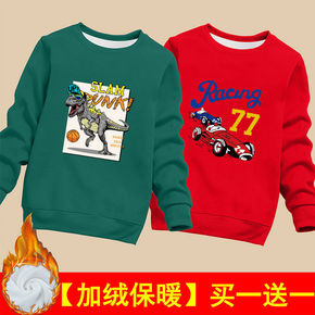 男童加绒卫衣2021新款春秋款中大童休闲上衣儿童打...