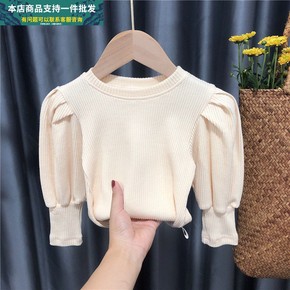 儿童泡泡袖上衣女童泡泡袖打底衫洋气韩版宝宝秋衣单件...