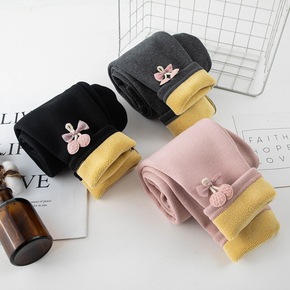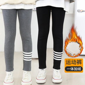 中小女童打底裤加绒加厚春秋冬新款女宝宝儿童弹力修身...