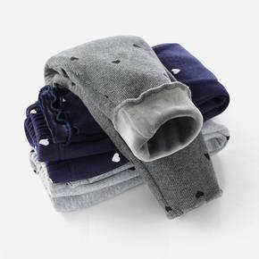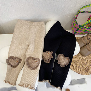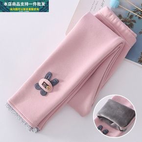 2021中小童冬季新款加绒加厚女童长裤现货韩版爱心...