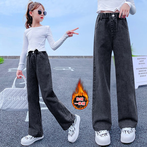 厂家直销2021新款秋冬秋款牛仔裤加绒阔腿裤儿童冬...