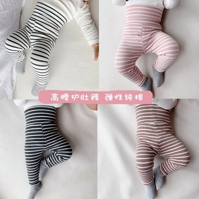 婴儿春秋棉条纹打底裤女宝宝高腰护肚裤2020pp裤...