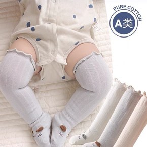 婴儿袜子宝宝春秋过膝袜男女新生儿童松口不勒腿纯色棉...
