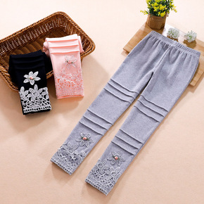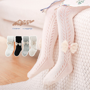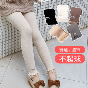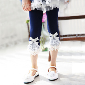 春秋款儿童打底裤精梳棉蝴蝶结蕾丝花边女童九分裤外穿...